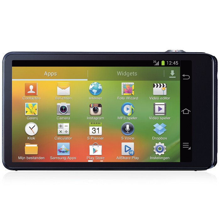 Samsung Galaxy Camera EK-GC100. Tipologia fotocamera: Fotocamera compatta, Megapixel: 16 MP, Dimensione del sensore di immagine: 1/2.3", Tipo sensore: CMOS, Risoluzione massima immagine: 4608 x 3456 Pixel. Sensibilità ISO (max): 3200. Zoom ottico: 21x, Lunghezza focale: 4.1 - 86.1 mm. Wi-Fi. Tipologia HD: Full HD, Risoluzione massima video: 1920 x 1080 Pixel. Dimensioni schermo: 12,2 cm (4.8"), Touch screen. Peso: 300 g. Colore del prodotto: Blu.